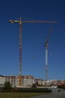 Věžové jeřáby Liebherr 112 EC-H s výškou pod hák 73,6 m a 88 m na stavbě výškového domu - Petržílkova ulice, Praha - Stodůlky
